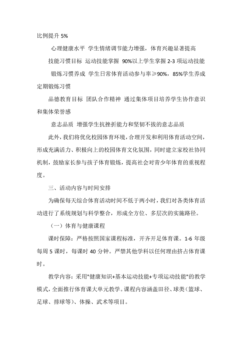 中北第二小学每天综合体育活动不低于两小时实施方案